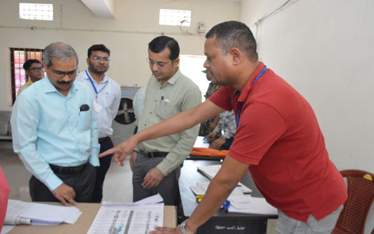 कोरबा 29 अप्रैल 2024/ सामान्य प्रेक्षक श्री प्रेम सिंह मीणा, कलेक्टर एवं जिला निर्वाचन अधिकारी श्री अजीत वसंत ने आज लोकसभा सामान्य निर्वाचन के दौरान कोरबा संसदीय क्षेत्र अंतर्गत आने वाले सामान्य निर्वाचन कर्तव्य पर तैनात अधिकारी-कर्मचारियों के मतदान हेतु बनाए गए सुविधा केंद्र का निरीक्षण कर डाक मतपत्र द्वारा किए जा रहे मतदान प्रक्रिया का अवलोकन किया। प्रेक्षक श्री मीणा ने मतदान कार्य में निर्वाचन आयोग द्वारा निर्धारित प्रक्रिया के अनुरूप मतदान पूर्ण कराने की बात कही। साथ ही डाक मतपत्र द्वारा मतदान के संबंध में दूसरे जिलों में भी सूचना प्रेषित करने के निर्देश दिए। जिससे अन्य जिलों में पदस्थ कोरबा संसदीय क्षेत्र के रहने वाले अधिकारी-कर्मचारी निर्धारित तिथि तक डाक मतपत्र के माध्यम से मतदान कर सकें। इस अवसर पर जिला पंचायत के मुख्य कार्यपालन अधिकारी श्री संबित मिश्रा, डिप्टी कलेक्टर श्री गौतम सिंह सहित अन्य अधिकारी कर्मचारी उपस्थित थे।