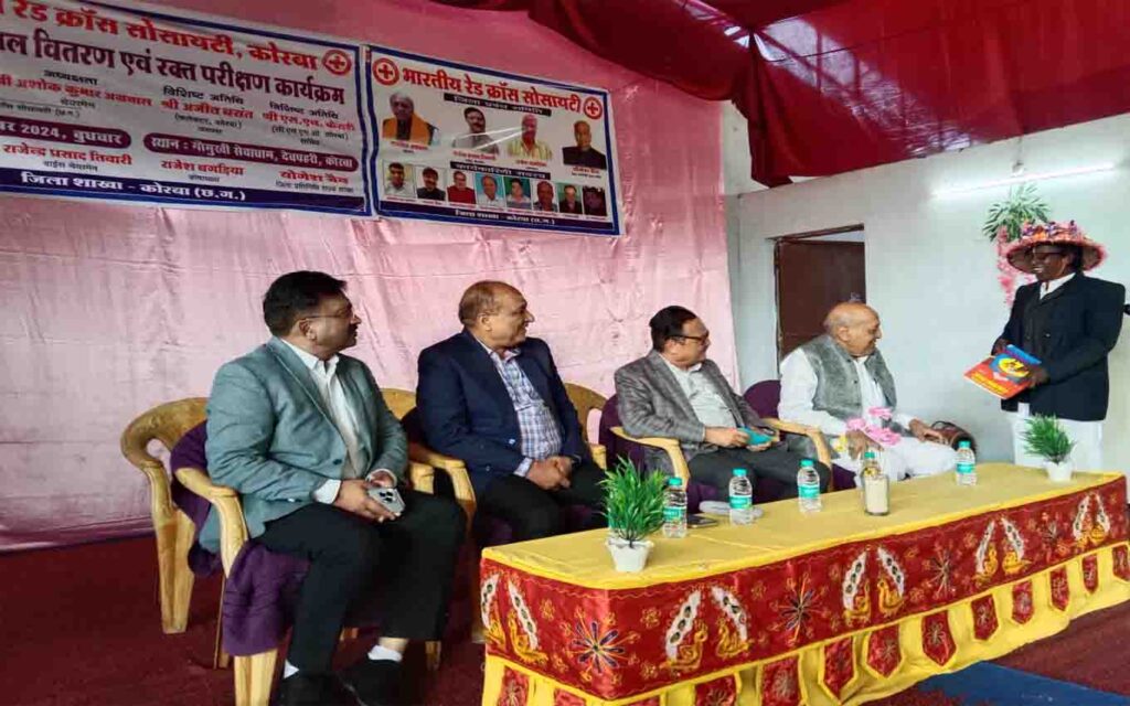 इस अवसर पर मुख्य अतिथि के द्वारा भारत माता के तैल्यचित्र पर पूजन व दीपप्रज्वलित कर कार्यक्रम का शुभारंभ किया गया इस अवसर पर रामसिंह अग्रवाल चेयरमैन भारतीय रेडक्रास सोसायटी कोरबा ने अपने उदबोधन कहा कि आज यहां कंवल वितरण व रक्त प्ररीक्षण कार्यक्रम का अयोजन किया गया है देव घाटी के 40 ग्रामों में निवासरत राष्ट्रपति की दत्तक जाति पहाड़ी कोरवा, पंडों, विरहोर, मांझी, मंझवार को कंवल का वृहद वितरण किया जायेगा ।